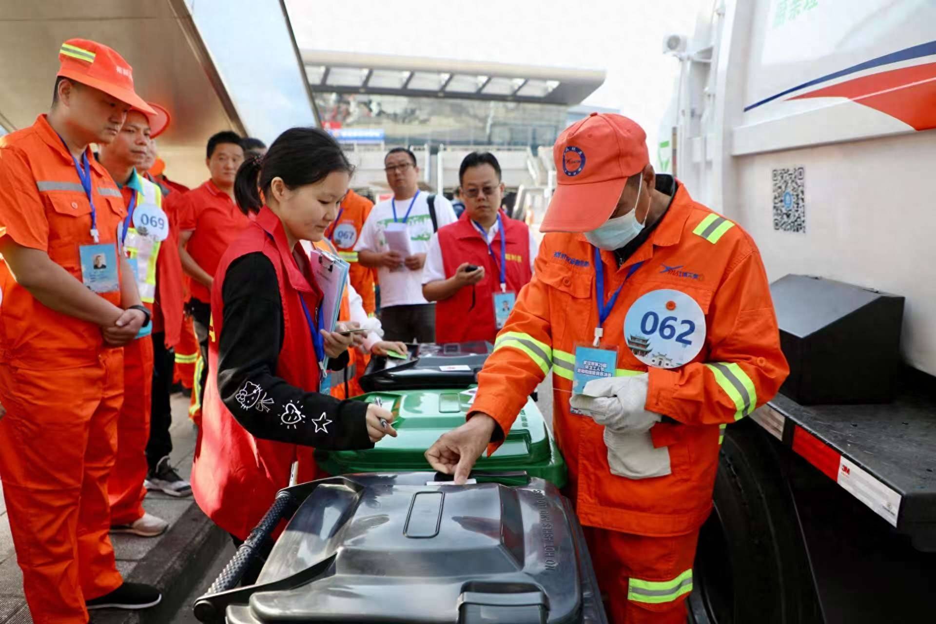 餐厨废弃物收运作业赛场同样精彩。人行道上摆放的4个餐厨垃圾桶和2个其他垃圾桶前,两名选手一组迅速展开作业。司机精准倒车停位,收运操作工将随车携带的清洁工具带下车,在作业后方放置警示锥,再逐一检查垃圾桶盖上放置的10张卡片,挑出其中代表其他垃圾的卡片放入对应垃圾桶,再将餐厨垃圾装卸到车里,垃圾桶归位后完成地面清理,最后通过微信小程序填报电子收运联单,整个过程用时均控制在6分钟以内。“‘不分类不收运、桶归原处、工完场清’,这些竞赛要求就是我们日常的作业准则。”江岸区环卫集团众旺物业有限公司参赛的环卫师傅叶伟说,“通过此次竞赛,把每一步规范都刻在了心里,以后日常收运作业时操作会更规范了。”